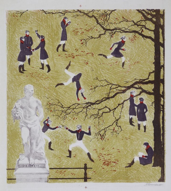 Всего одной работой – портретом Пушкина-лицеиста – на выставке представлено творчество выдающегося мастера Владимира Андреевича Фаворского (1886–1964). Богатый арсенал приемов, которыми владел художник, способствовал не только содержательной простоте и ясности, но и лиризму, передаче оттенков настроения в его работах, что чувствуется в портрете, представленном на выставке.