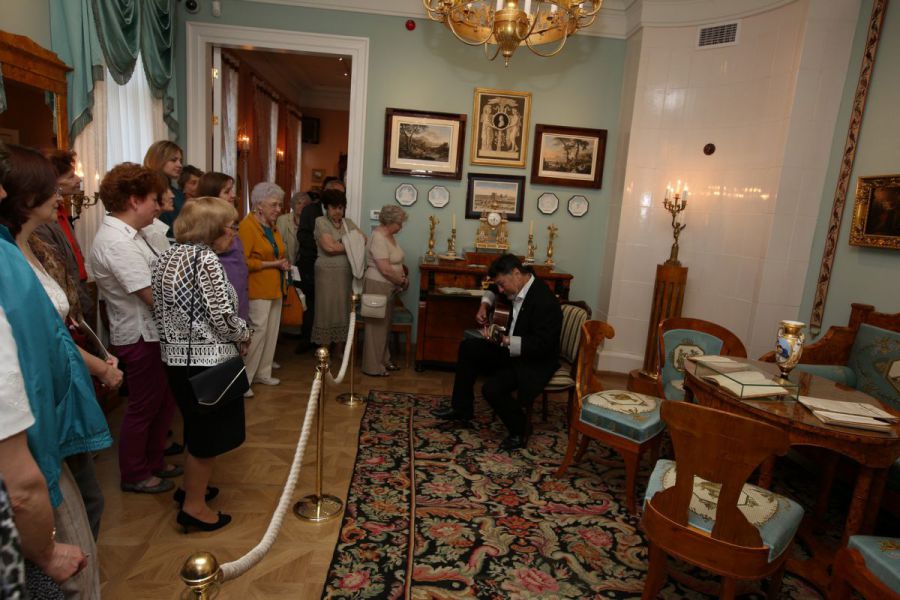 «В музее нет поясняющих надписей под экспонатами, как в обычном музее. Сотрудники поставили перед собой задачу воссоздать атмосферу пушкинского времени. В книжном шкафу Василия Львовича - фолианты в три ряда, как и при жизни поэта, в столовой накрыт стол. Воссоздана даже комната камердинера Игнатия Хитрова. И чучело дурного вкуса, в которое стрелял Василий Львович на церемонии посвящения в члены общества «Арзамас», - тоже имеется.