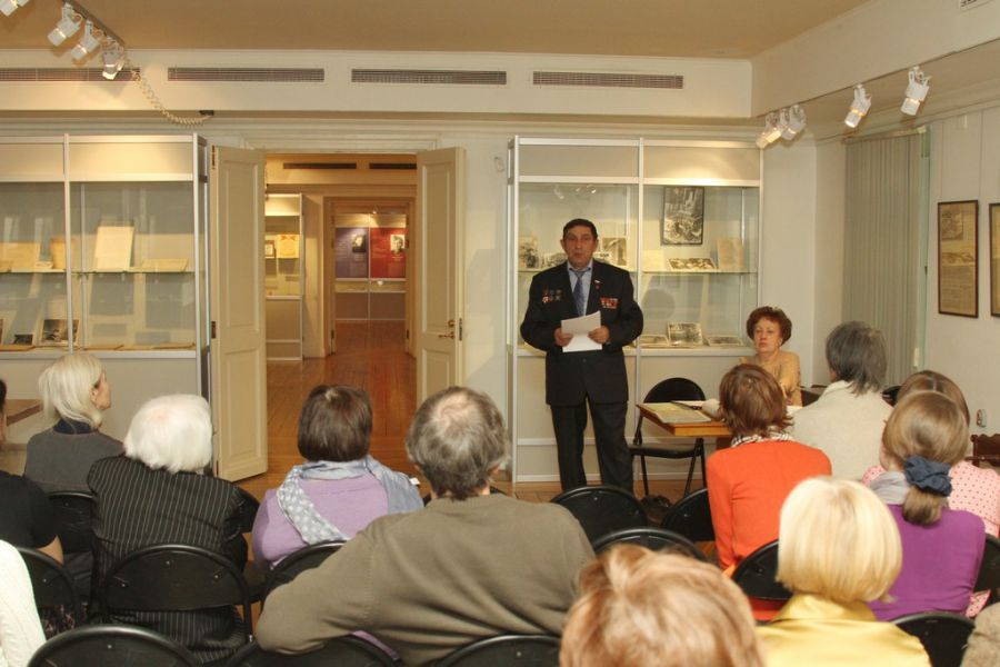 В этот же день в Музее И.С. Тургенева, филиале ГМП, к 70-летию Великой Победы сотрудники музея организовали Вечер «УХОДИЛИ НА ФРОНТ ОТЦЫ» (военные истории семей остоженского дома). В старинном особняке 37 на Остоженке, как и во многих других московских домах, после 1917 года были коммунальные квартиры. Жили большой дружной семьей - и радость, и горе были общими. В 1941 году в дом на Остоженке пришла большая беда - одна на всех, как и в миллионы других домов нашей страны. Отсюда уходили на фронт отцы, деды и прадеды тех, кто накануне Дня Победы пришел на вечер в Музей И.С. Тургенева, чтобы рассказать об их боевой славе. В воспоминаниях бывших жильцов, старых документах и фотографиях оживали те, кто не вернулся с той войны и те, кто пришел после Победы в свой старинный дом. Прозвучали стихи о войне, были исполнены песни и танцы военных лет. |