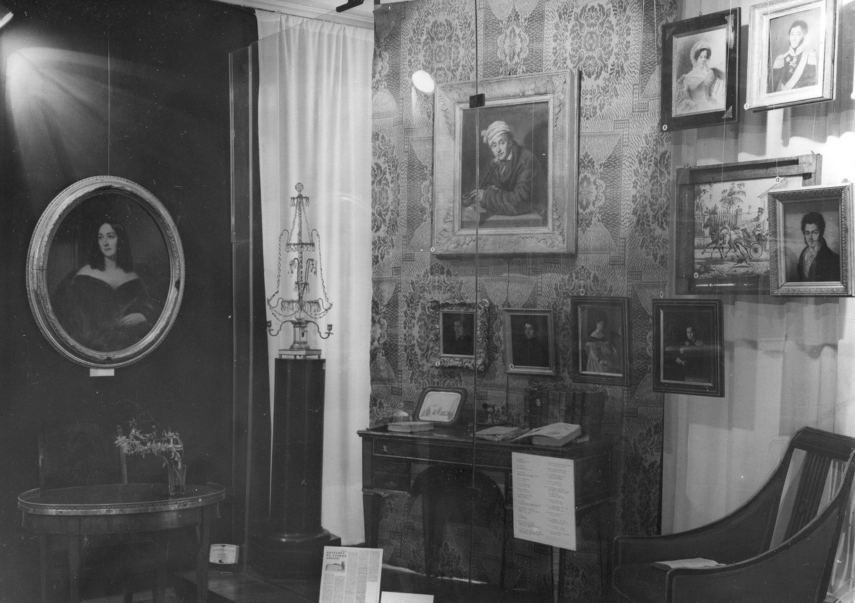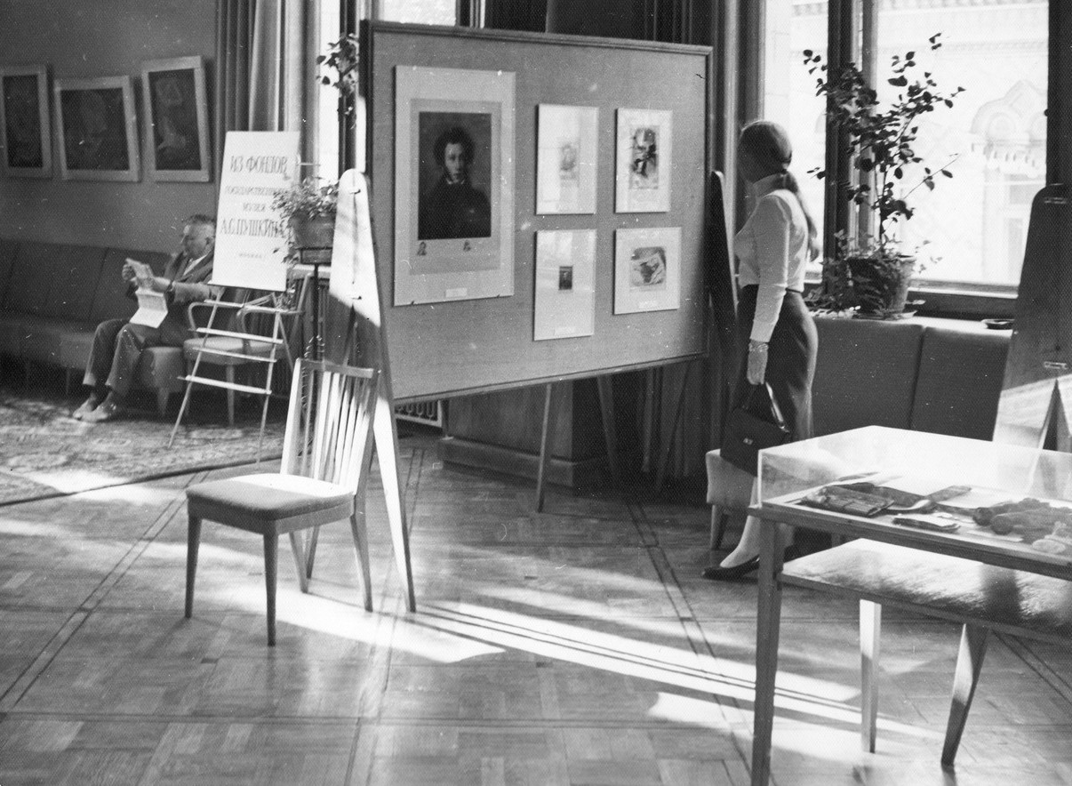 В музее начинают создаваться передвижные выставки на подлинных материалах. Выставки «Их знал Пушкин», «Воспетые Пушкиным», «Спутники Пушкина» были построены на портретных гравюрах и литографиях пушкинского времени. Произведения современных художников, работавших над пушкинской темой, вошли в состав выставки «Пушкин в советском изобразительном искусстве». Из лучших детских рисунков составилась выставка «Пушкин глазами детей». За двадцать лет своего существования передвижные выставки побывали в Пскове, Новгороде, Саратове, Волгограде, Одессе, Астра-хани, Нижнем Тагиле, Ялуторовске, Тбилиси, Вильнюсе, Киеве.