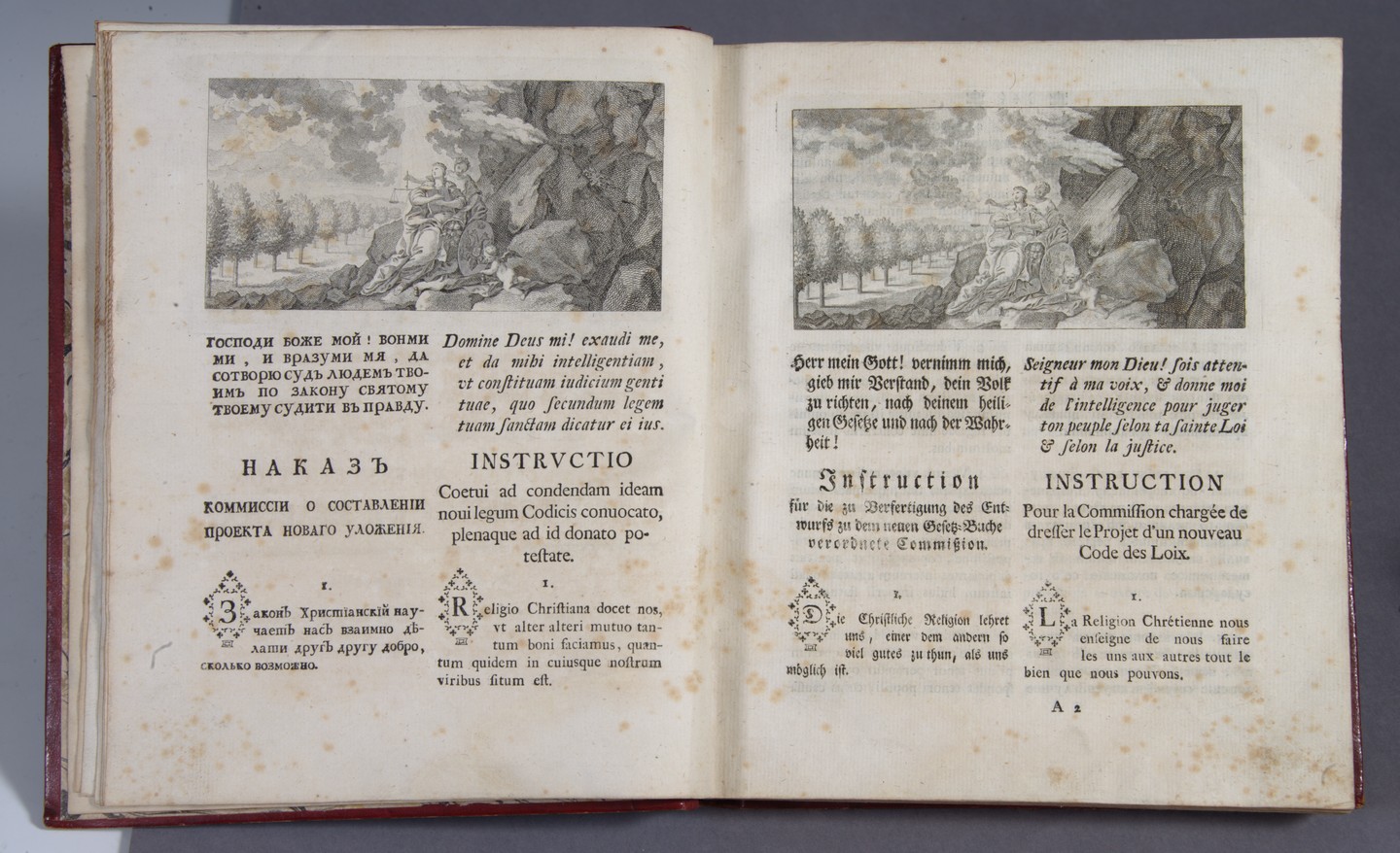 Наказ Ея Императорского Величества Екатерины Вторыя Самодержицы Всероссиския данный Комиссии о сочинении проекта новаго уложения. СПб. 1770. Разворот