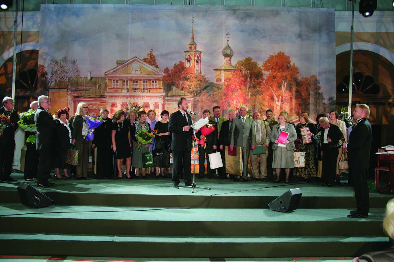 ГМП с юбилеем поздравляют руководители российских музеев. На переднем плане справа - Е.А. Богатырев, директор Государственного музея А.С. Пушкина, лауреат Государственной премии РФ.