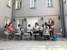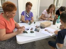 Завершил уличную программу мастер-класс скульптора Марии Казанцевой, автора недавно появившейся на территории музея бронзовой скульптуры Муму. Мастер-класс так и назывался – «Любимый образ Муму», где и взрослые, и дети с равным азартом и удовольствием воплощали в глине образ трогательного персонажа тургеневской повести. Посетители музея получили массу ярких впечатлений, а общим итогом праздника стало хорошее настроение, чему способствовала также удивительно ясная, тихая, по-летнему теплая погода.
