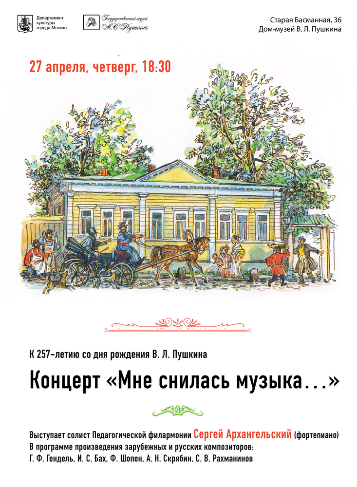 Перед началом концерта – вступительное слово о В. Л. Пушкине