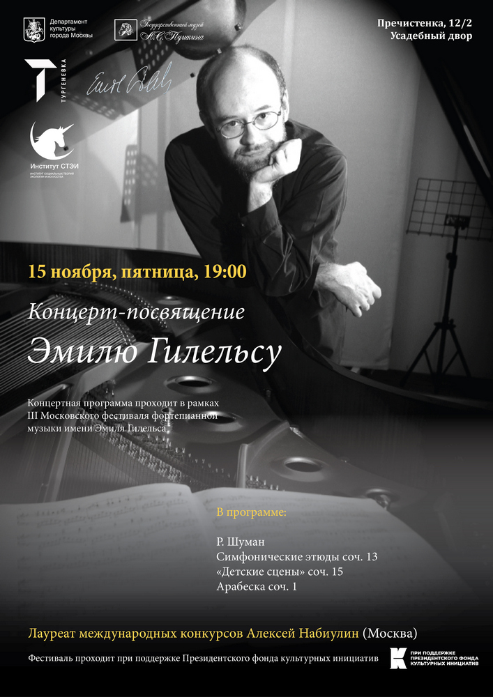Приглашаем всех желающих в Государственный Музей А.С. Пушкина на Концерт «Памяти Эмиля Гилельса». Концертная программа проходит в рамках III Московского фестиваля фортепианной музыки имени Эмиля Гилельса.
