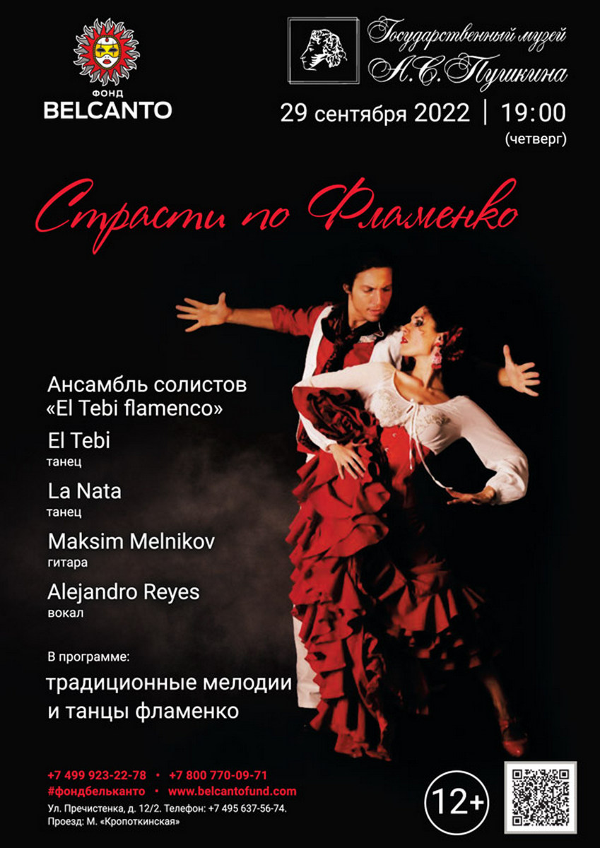 Магия ритма, экспрессия цвета. Напряжённый излом руки, свободный полёт кисти. Тайный смысл движения, вечная загадка образа. Традиция, хранимая миллионами, новатор, поразивший весь мир. Звучит фламенко Андалусии. А значит - тишина неотвратимо взорвётся захватывающими испанскими ритмами и яркими южными страстями. Голоса певцов, немного резкие и слегка осипшие от эмоций, станут призывать чувственные восторги… затейливые импровизационные намерения гитаристов - отзовутся необузданной фантазией танцоров, чья гордая грация, в какой-то момент, неожиданно сорвётся в яростную ритмическую вакханалию… на грани и за гранью человеческих возможностей.