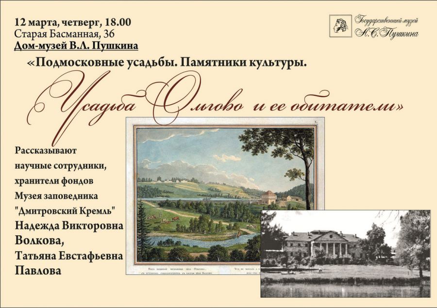 Лекция «Подмосковные усадьбы. Памятники культуры. Усадьба Ольгово и ее обитатели»