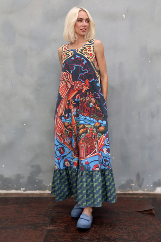 Коллекция «Золотой петушок» создана по мотивам сказок Александра Сергеевича Пушкина к его юбилею. Сказочные мотивы нашли отражение в большой этнокапсуле, куда входят платья, юбки, блузы, жилеты, верхняя одежда и аксессуары. Здесь соединяются и переплетаются традиционная русская тематика и восток — купола, архитектура и роспись храма Василия Блаженного, персидские узоры, а также многие другие интересные сказочные образы и орнаменты. Коллекция выдержана в ярких и благородных цветах: синем, золотом, терракотовом.