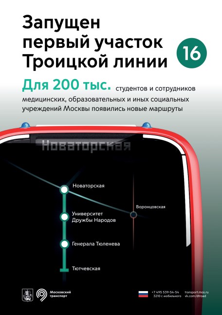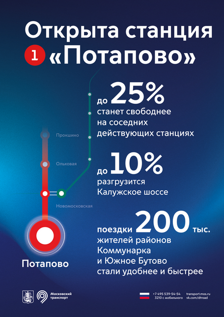 В 2024 году Транспортным комплексом города Москвы проводится масштабная информационная кампания, посвященнаявводу в эксплуатацию новых станций Московского метрополитена: открытию станции «Потапово» Сокольнической линии, а также запуску первого участка «Новаторская» – «Тютчевская» Троицкой линии.