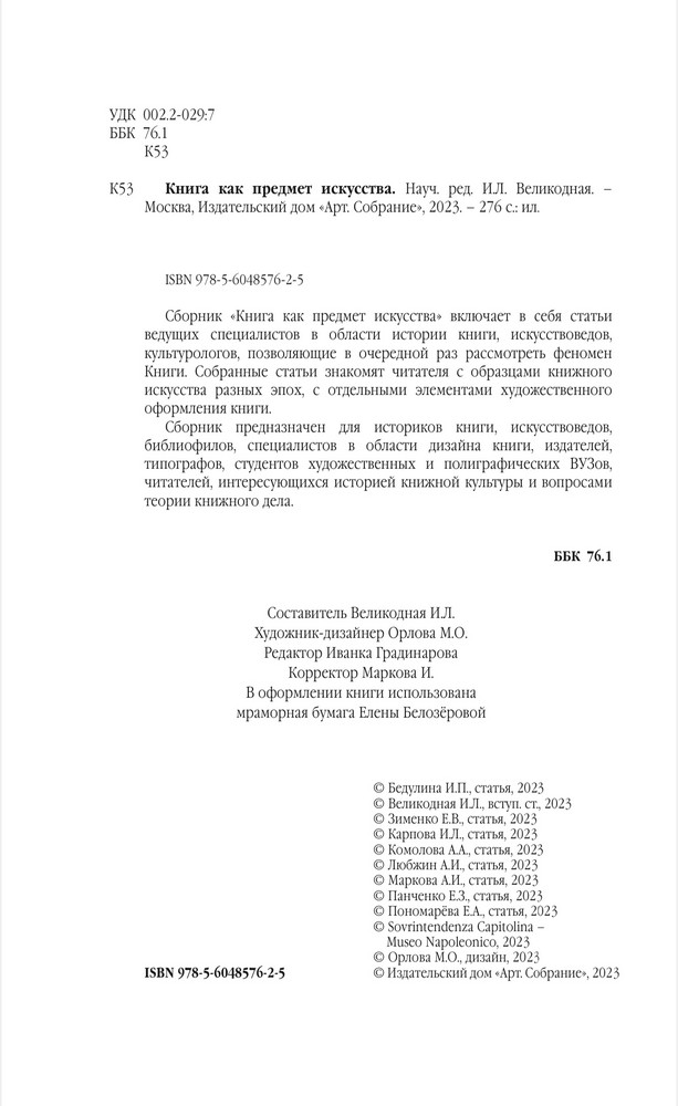 Сборник предназначен для историков книги, искусствоведов, библиофилов, специалистов в области дизайна книги, издателей, типографов, студентов художественных и полиграфических ВУЗов, читателей, интересующихся историей книжной культуры и вопросами теории книжного дела.