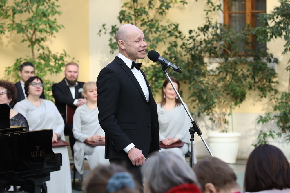 Сразу после «Слова о Пушкине» началась концертная программа. Её открыл актер театра и кино Иван Кокорин. В его исполнении прозвучали отрывки из стихотворных произведений А.С. Пушкина.