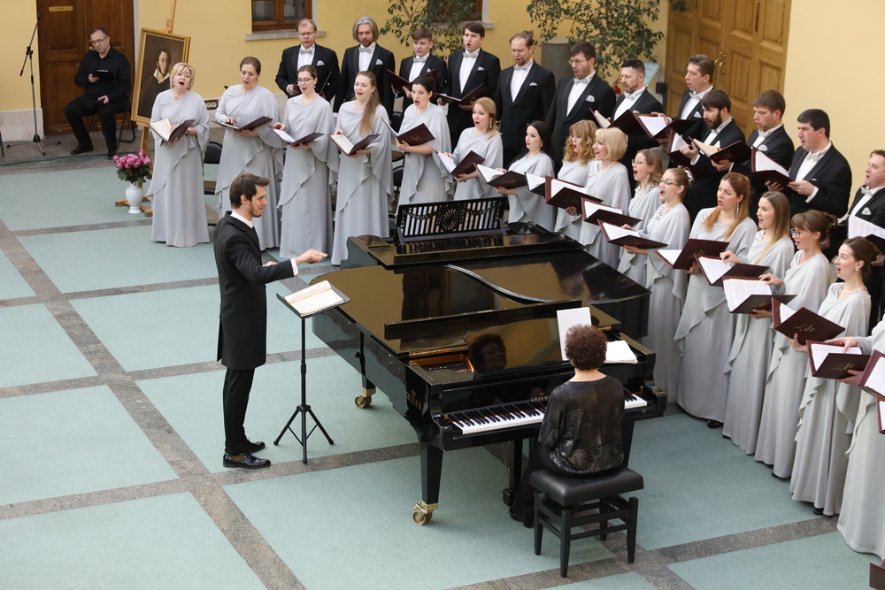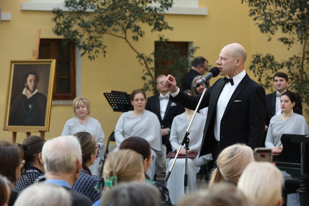 Продолжил памятный вечер концерт «Приношение А.С. Пушкину». В нем прозвучали арии и сцены из опер на сюжеты А.С. Пушкина, романсы на стихи поэта в сопровождении Московского государственного академического хора (Хор Минина).