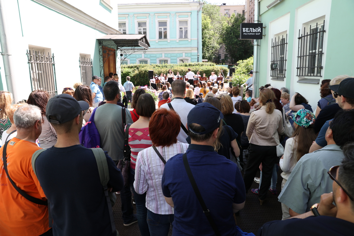 2 июня во дворике арбатского дома молодежный оркестр «Доминанта» очень эмоционально исполнил композицию «Пушкин. Свиридов. Метель». Текст Пушкина блестяще читала Екатерина Денисова. Оркестром руководил почетный работник культуры г. Москвы Михаил Головин. После этого «взрослые» певцы спели романсы и арии на стихи А.С. Пушкина, а также произведения русской и зарубежной классики. Атмосфера, царившая на этом концерте, отличалась дружелюбием, взаимным расположением между артистами и слушателями. Солнечная погода дополняла эту приподнятую атмосферу, лишь ветер иногда «завывал» в микрофон, напоминая о метели в повести Пушкина. Всех пришедших в этот день в садик музея «приветствовал» силуэт поэта с дирижерской палочкой в руке. Он стоял у входа в музей, выглядывал из зеленых зарослей, приглашал пройтись по дворику, и казалось, что он руководит всем происходящим.