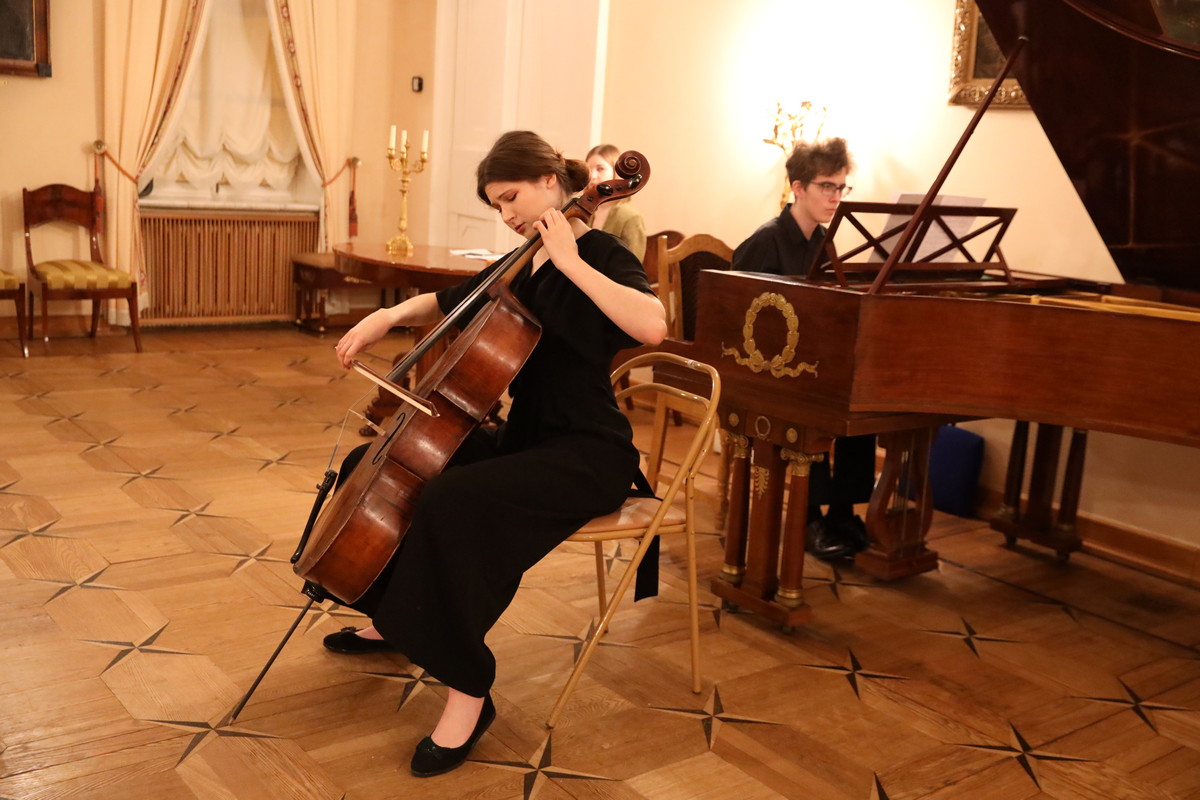 Знаменитое «Пеццо каприччиозо» П.И. Чайковского, входящее в программу Международного конкурса имени П.И. Чайковского, виртуозно исполнили София Деева (виолончель) и Георгий Мазуров (фортепиано).