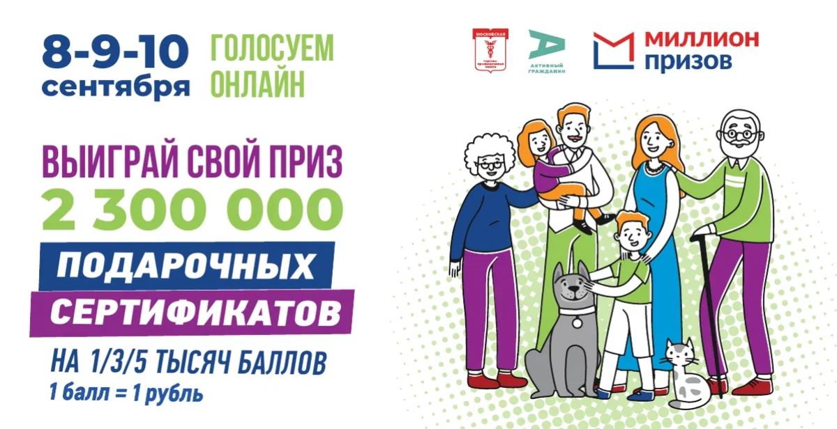 Программа «Миллион призов» продолжается! Те, кто примет участие в электронном голосовании на выборах, проводимых на территории города Москвы с 8 по 10 сентября 2023 года, смогут участвовать в розыгрышах призов и выиграть призовые баллы.