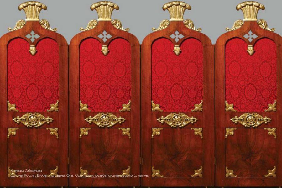 Мы предлагаем Вам заглянуть «за ширмы» - в прямом и переносном смысле – в мир известных литературных героев. За разнообразными по стилю, формам и манере исполнения ширмами оживают уголки спален и гостинных, мастерских и кабинетов, описанных в произведениях А.С. Пушкина («Пиковая дама»), Н.В. Гоголя («Портрет», «Мертвые души»), И.А. Гончарова («Обломов»), И.С. Тургенева («Дворянское гнездо», «Холостяк»), В.А. Соллогуба («Большой свет»), Л.Н. Толстого («Детство»), А.Н. Толстого («Хождение по мукам»), Андрея Белого («Крещеный китаец»).