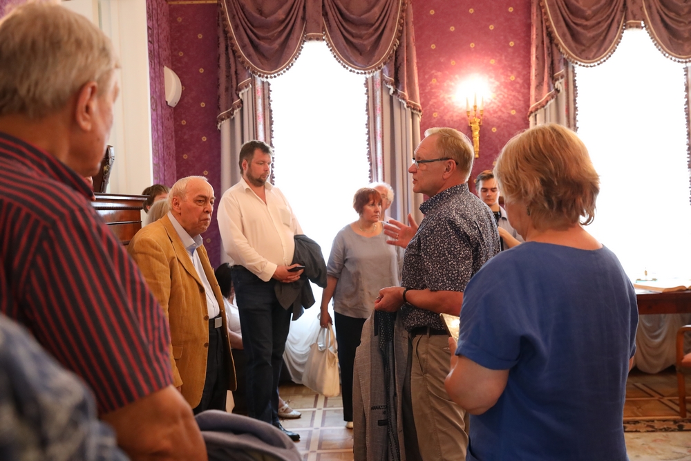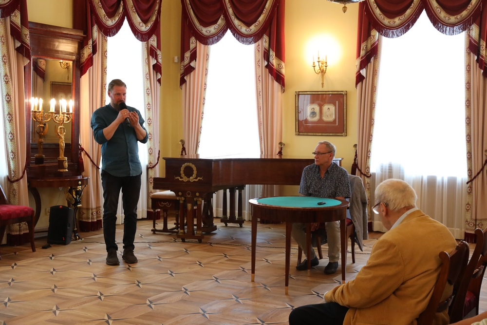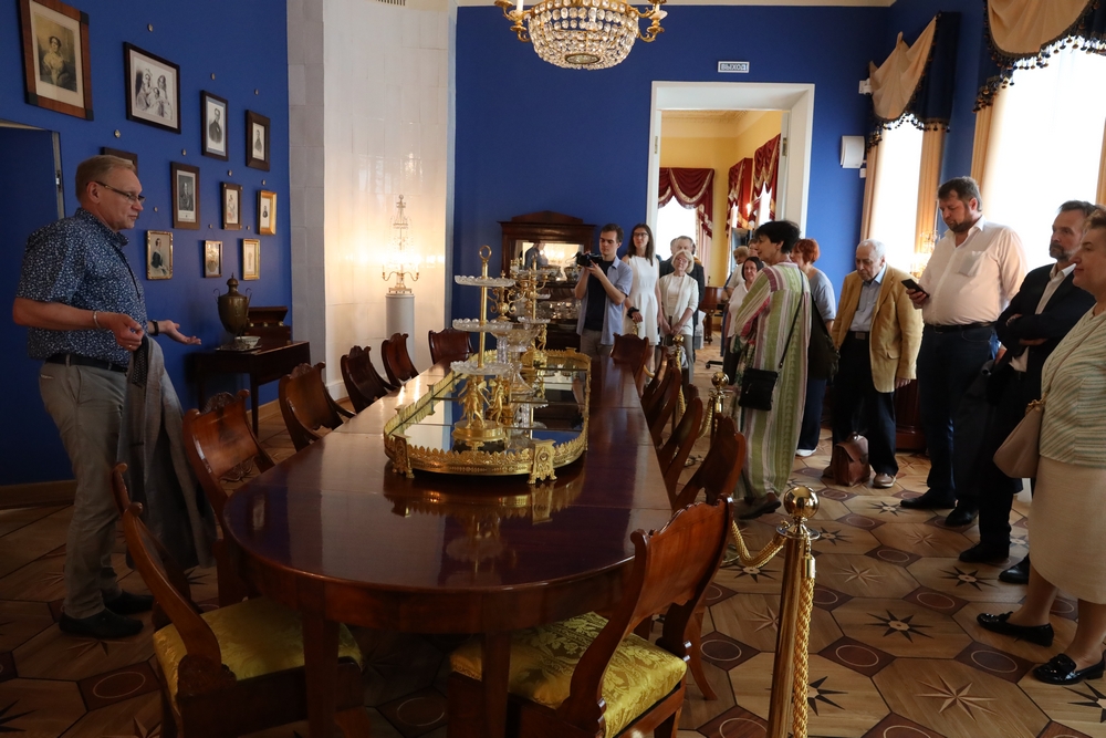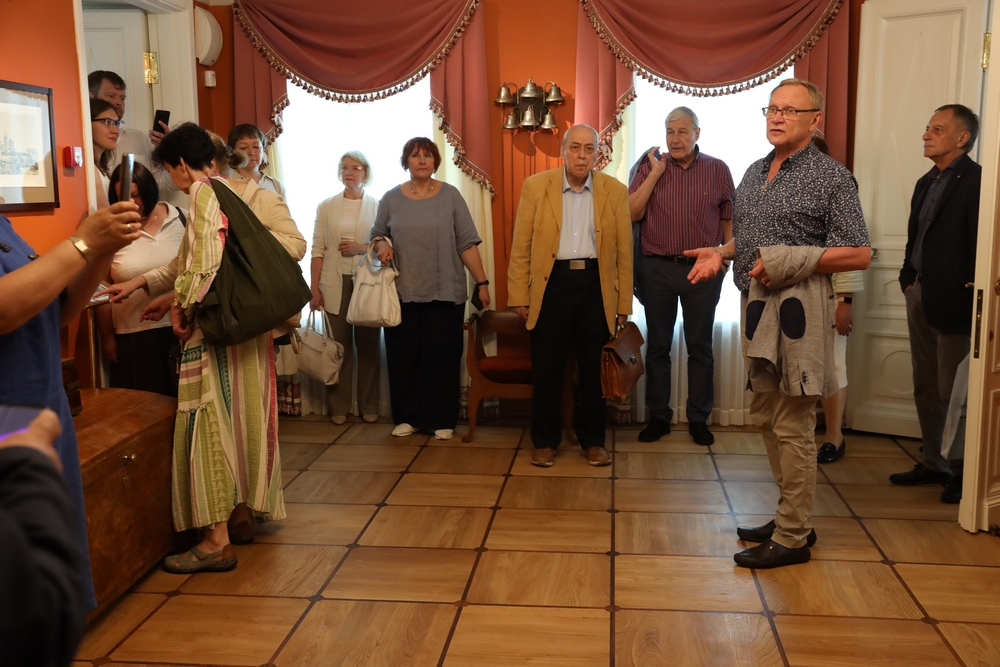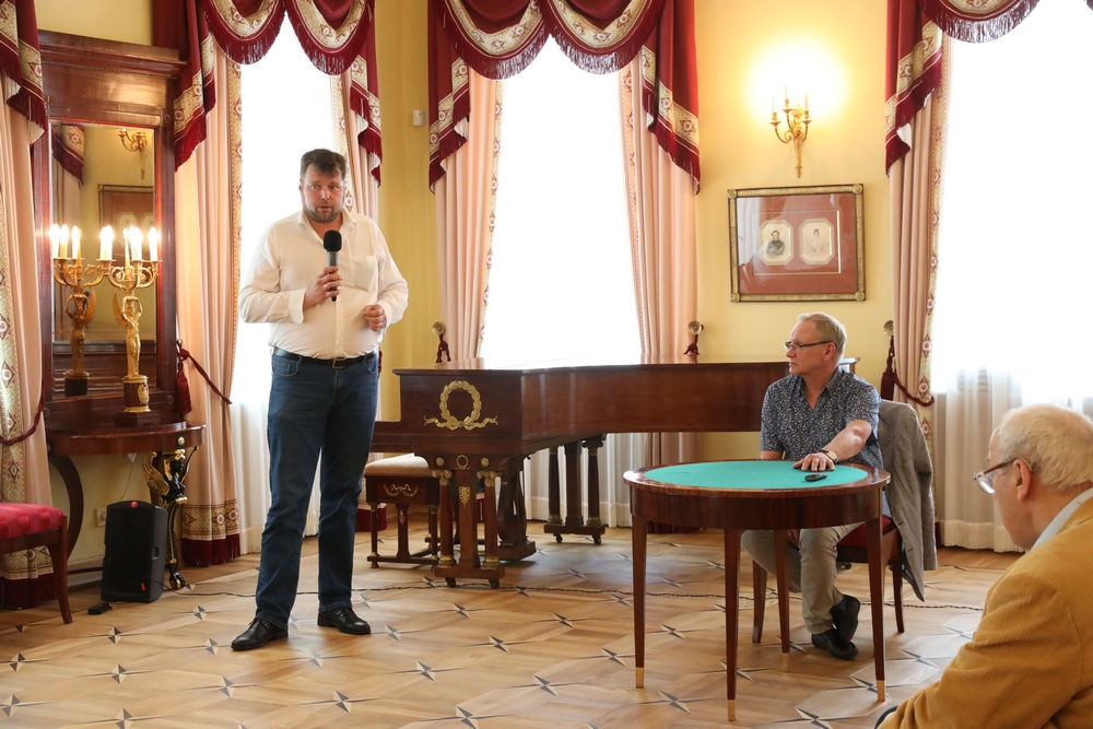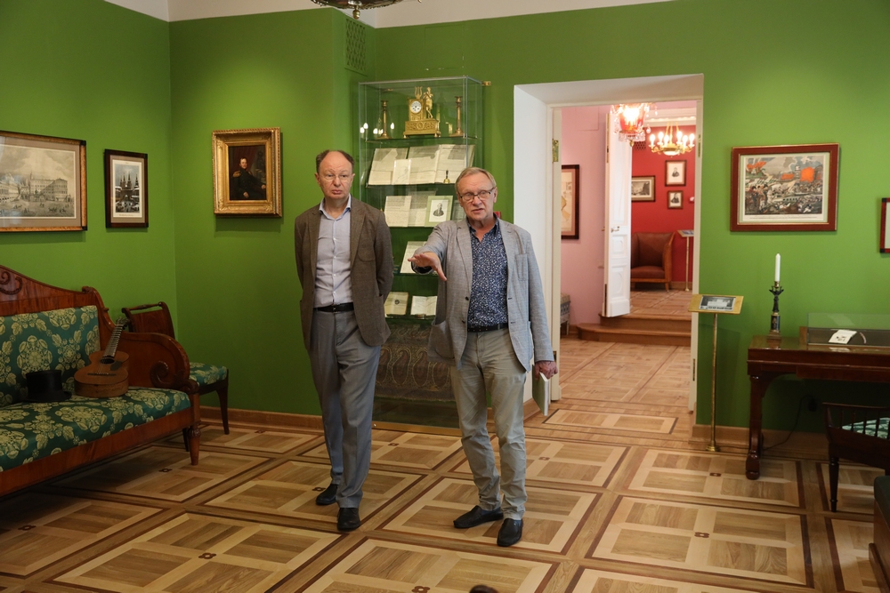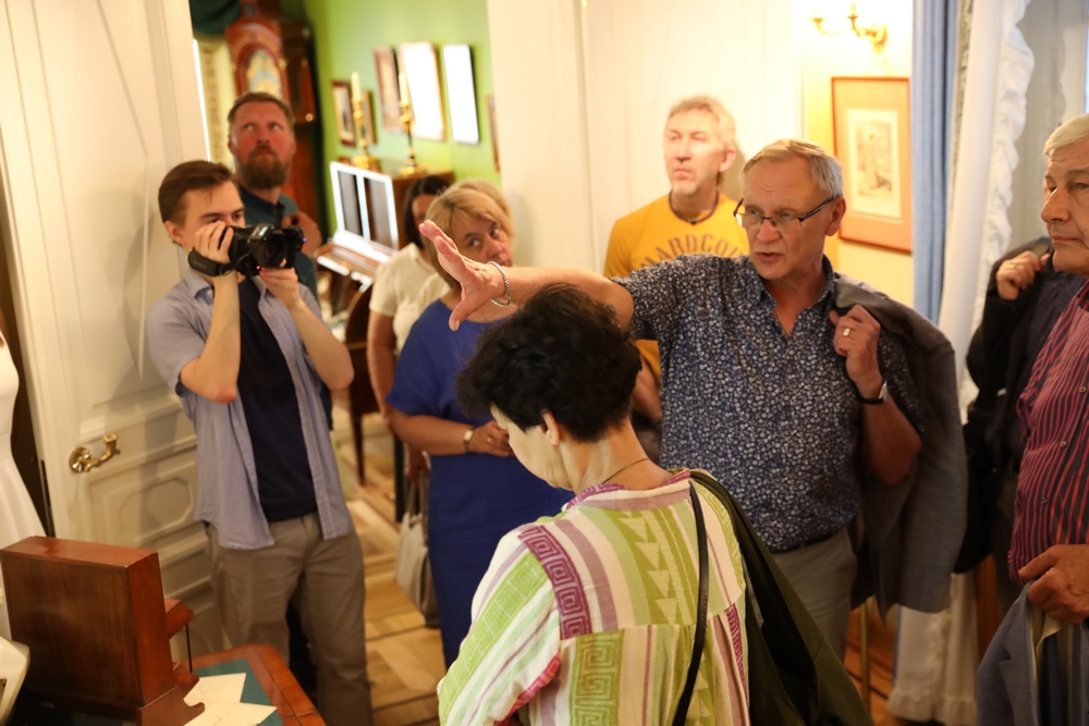 Прежде чем открыть заседание Ученого совета, директор ГМП Евгений Анатольевич Богатырев пригласил участников встречи на небольшую прогулку по залам арбатского особняка, представил коллегам новое пространство Мемориальной квартиры А.С. Пушкина и рассказал об итогах ее реконструкции и реставрации.