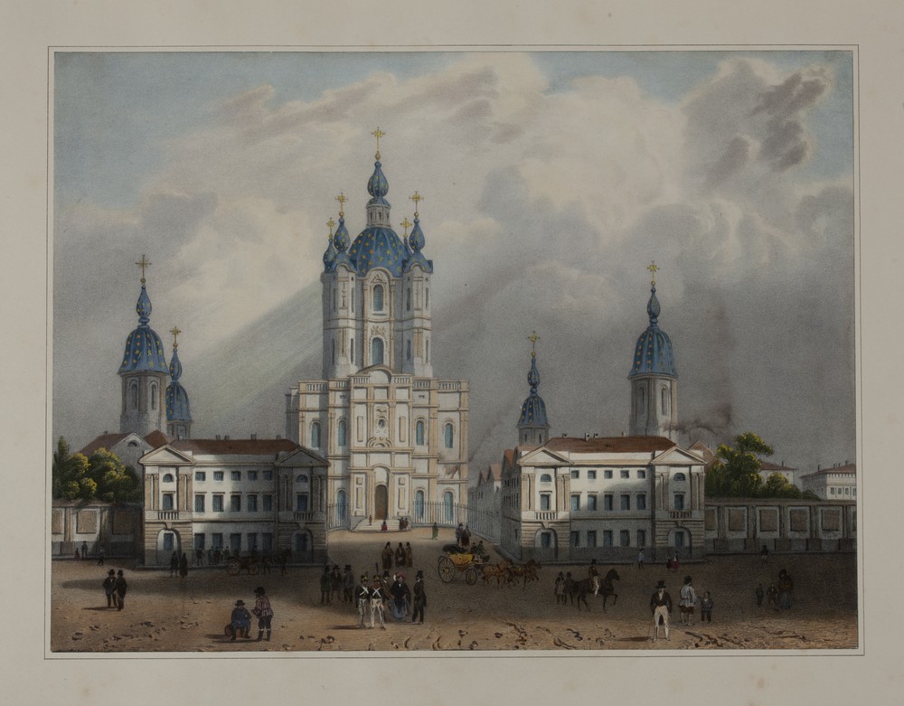 Первая часть экспозиции посвящена творчеству Франческо Бартоломео Растрелли, который начал свою деятельность в России при Петре I. Строительство Петербурга пришлось на эпоху расцвета барокко, и Растрелли стал главным автором, воплощающим в камне этот стиль. Будучи придворным архитектором, он построил Зимний и Воронцовский дворцы, Большой дворец в Петергофе, Смольный монастырь и Екатерининский дворец в Царском Селе, а также многое другое, его проекты, сочетая классические барочные формы и национальный колорит, гармонично объединили в себе торжественность, пышность и роскошь молодой столицы. Его именем в центре сегодняшнего Санкт-Петербурга названа площадь Растрелли, бывшая Смольная. В этот раздел выставки вошли также виды города, на которых запечатлены работы Юрия Матвеевича Фельтена (Георга Фридриха Фельдтена; 1730–1801) – российского архитектора, с 1752 по 1762 год – помощника Ф. Б. Растрелли при возведении Зимнего дворца и других зданий Санкт-Петербурга и его окрестностей.