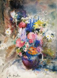 Искусство Фонвизина отличается широким тематическим и жанровым диапазоном, в котором не последнюю роль играет портретный жанр. В галерее созданных им портретов излюбленными моделями выступают оперные певицы, балетные танцовщицы, артисты драматических театров. В типизированных и конкретных образах современниц мастера привлекает естественная красота, обаяние и непосредственность в поведении его героинь. В акварельную стихию Артура Фонвизина органично входят натюрморты и пейзажи. Художник очарован цветами. Соединенные в букеты, пышные или скромные, яркие или неброские. В их изображении он демонстрирует владение богатейшим художественным инструментарием, позволяющим создавать искрометно разнообразные красочные композиции Артур Фонвизин – автор многочисленных сюжетных композиций, образующих тематические серии. Богатые художественные миры Артура Фонвизина – к какому бы жанру он ни обращался – всегда оставались светлыми, радостными, нередко даже праздничными, излучающими неиссякаемую жизненную силу и энергию этого выдающегося художника.