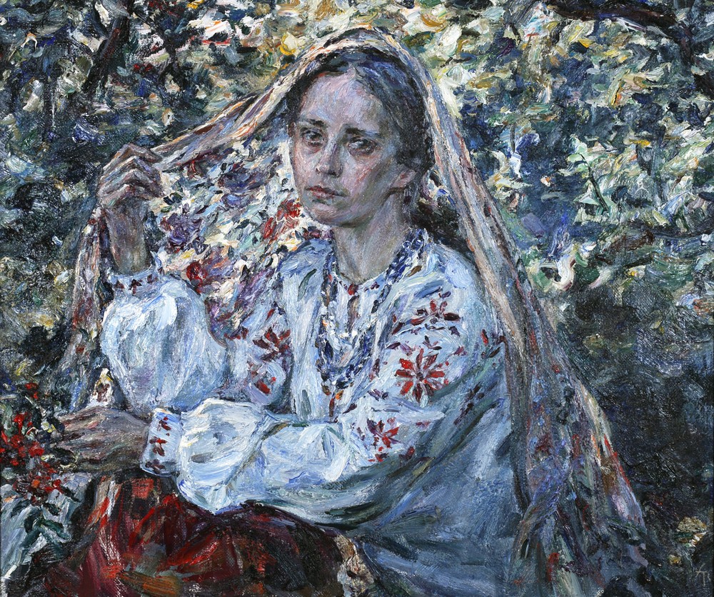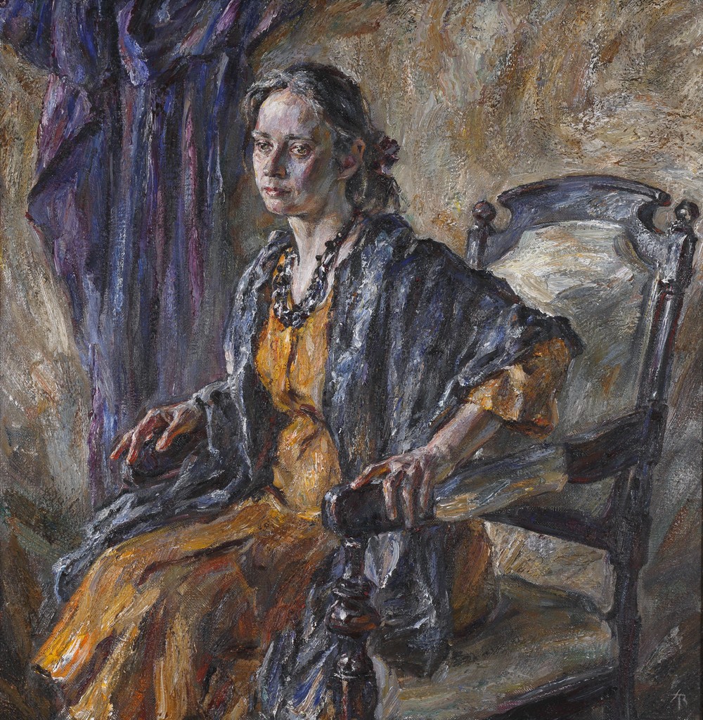 Верстов А. Иванка в жёлтом платье. 2021 х.,м. «Любая работа - это песня, стихотворение, приближение к чему-то глубокому в своем же подсознании. В идеале, созданная тобою картина, это и служение, и твоё собственное Предстояние перед Всевышним. В любом серьёзном произведении поиск и вопрос, часто - море неразрешимых проблем, скорбь, боль и одновременно любовь, и принятие мира вокруг», - считает художник.