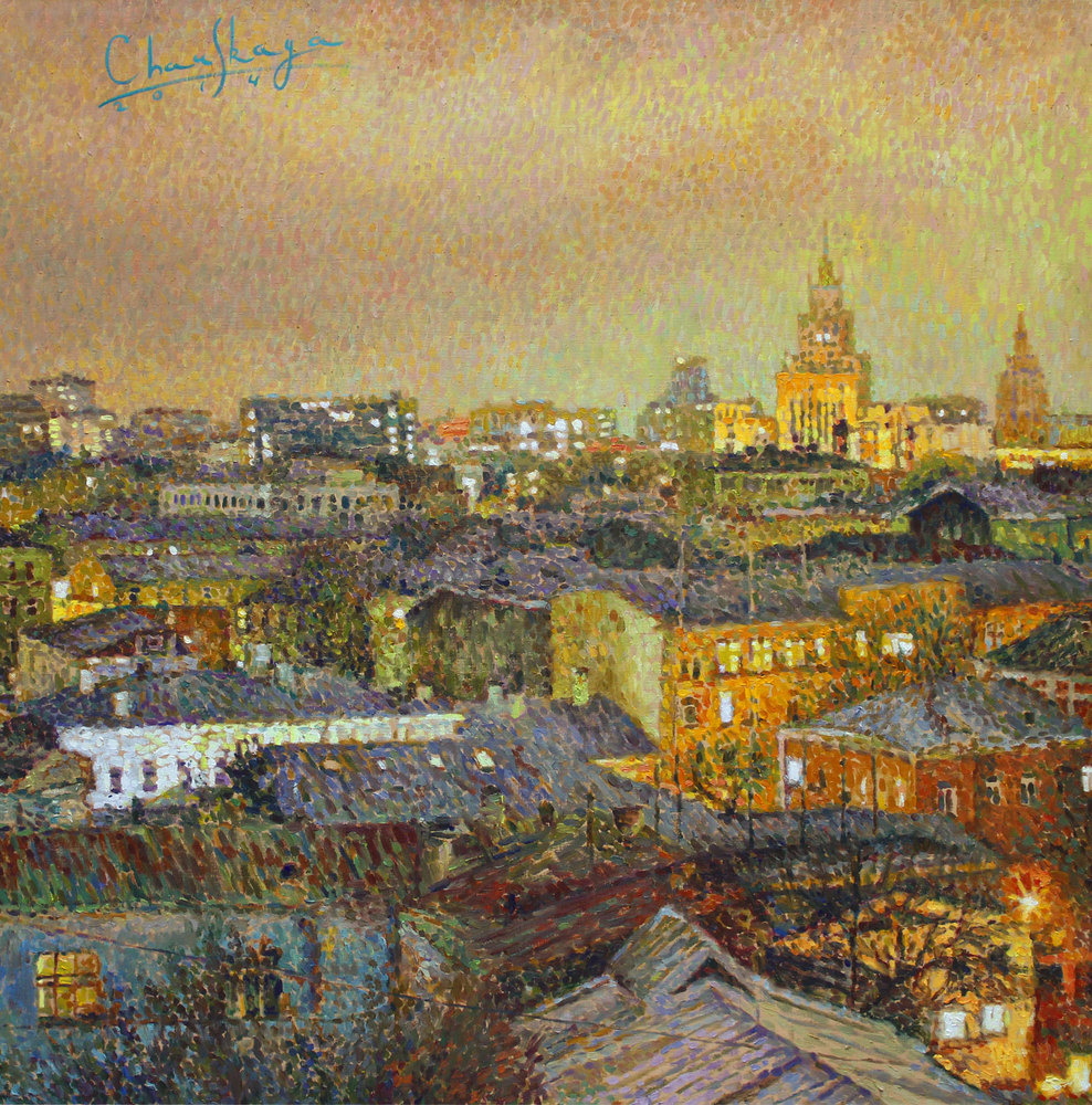 Выставка «Московские чары» приглашает зрителей в философское путешествие, сопоставляя «Коллекцию ангелов» художницы с ее серией «Квадратные метры Москвы». Эта тщательно выверенная подборка создает визуальный диалог, в котором романтический символизм встречается с корпускулярным искусством, а духовное стремление соприкасается с осязаемой реальностью городской жизни. Выставка предлагает гармоничное перевертывание позиций, воплощая принцип «как вверху, так и внизу», предполагая, что божественное неразрывно вплетено в саму ткань города.