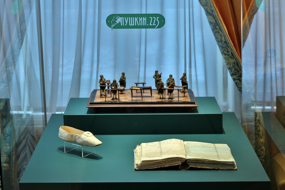 Залы основной экспозиции – «ПУШКИН.225. Поэт и его эпоха. Реликвии». В основную экспозицию музея «Пушкин и его эпоха» будут введены мемориальные предметы и реликвии, связанные с А.С. Пушкиным: трость, жилет, цилиндр, ножичек для разрезания бумаг поэта; подлинные рукописи, прижизненные портреты А.С. Пушкина; предметы мебели; живописные и графические изображения мест, связанных с его биографией. А так же личные вещи его современников (бальная туфелька, веер Н.Н. Пушкиной; мундиры императоров Павла I, Александра I, Николая I и др.)