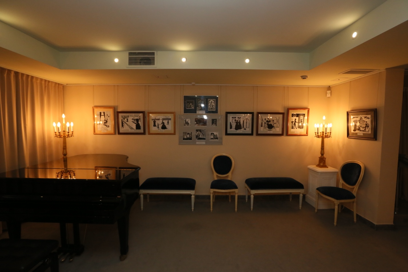 На выставке 56 работ: 12 акварелей, 14 рисунков гуашь, 28 линогравюр, 4 офорта. Сюжеты довольно разнообразные: сцены из жизни А.С. Пушкина, детство поэта, встречи с В.Л. Пушкиным в доме на Басманной, а также иллюстрации к его произведениям, предметы интерьера пушкинской эпохи, виды старой Москвы.