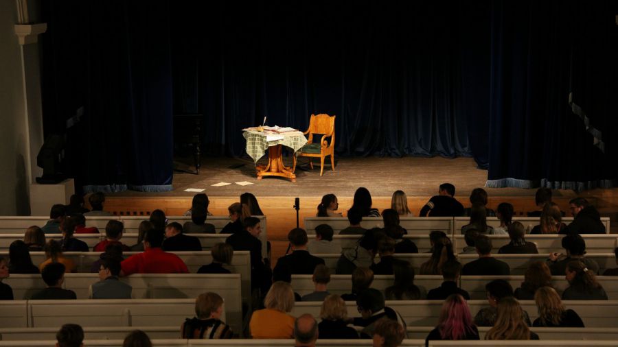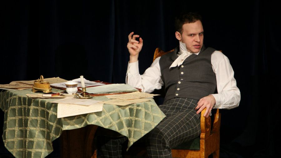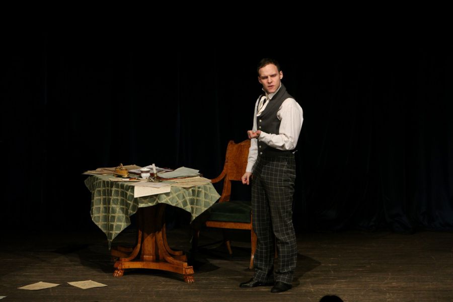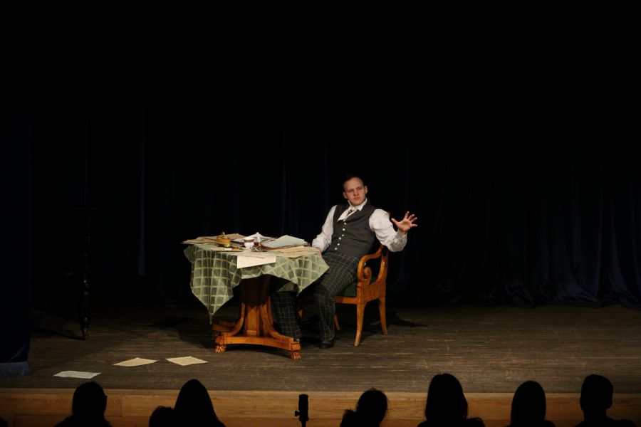 На сцене музея А.С. Пушкина оживают герои повестей «Гробовщик» и «Метель» в исполнении артиста МХТ им. А.П. Чехова Данила Стеклова.В период с начала сентября до конца ноября 1830 года, который вошел в историю русской литературы под названием «Болдинской осени», в числе многих шедевров был создан цикл рассказов «Повести Белкина». В «Повестях…» известный как непревзойденный стихотворец Пушкин проявил себя в новой роли – роли писателя-реалиста, мастера художественной прозы. Пушкинский текст – это «простой пересказ» разного рода происшествий, имевших место в жизни самых обыкновенных людей. Повести, написанные Белкиным, указывается в предисловии «От издателя», «большею частию справедливы и слышаны им от разных особ... названия сел и деревень заимствованы из нашего околотка... Сие произошло... единственно от недостатка воображения». Но в то же время в этот «простой пересказ» Пушкин сумел внести столько глубокого гуманного чувства, меткой наблюдательности, тонкого юмора и мягкой иронии и вместе с тем столько жизненной правды, широких типических обобщений, что его «Повести Белкина» являются и хронологически, и по существу началом русской художественной реалистической прозы. В произведении мы чувствуем интерес А.С. Пушкина к людям и явлениям «стороннего мира», пристальное внимание к русской действительности.